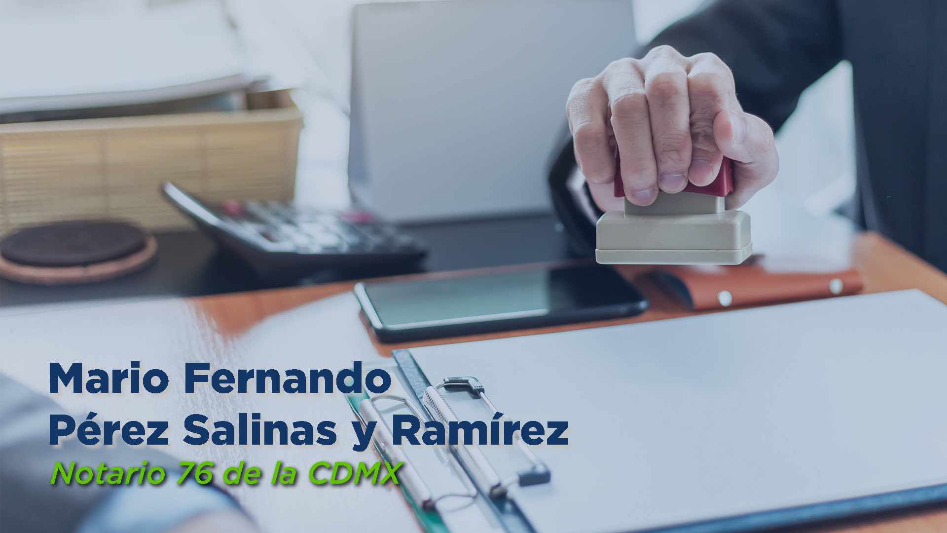 El notario MARIO FERNANDO PÉREZ SALINAS Y RAMÍREZ, es titular de la notaría 76 de la Ciudad de México, realizó sus estudios profesionales en la “Universidad Panamericana”, donde obtuvo, el 28 de febrero de 2006, el título de Abogado con la tesis profesional intitulada “Los Bienes de los Menores de Edad sujetos a Patria Potestad”, logrando “Mención Especial” al Examen Profesional sustentado. Asimismo, obtuvo la patente de Aspirante a Notario, el 26 de febrero de 2008, por el entonces Jefe de Gobierno del Distrito Federal.